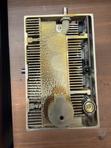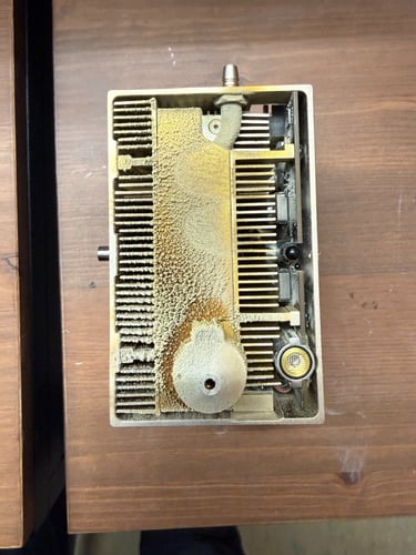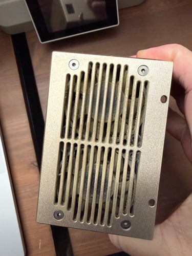 Und so sieht ein Laserkopf nach ein paar Stunden holzschneiden und -lasern aus