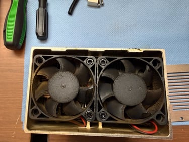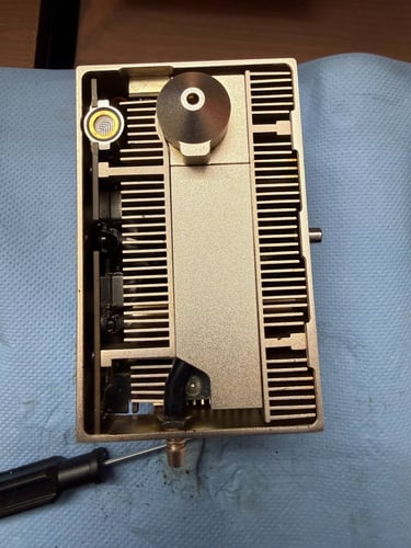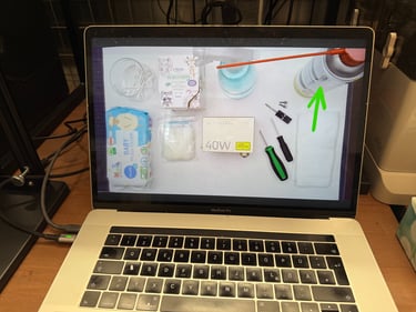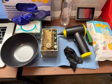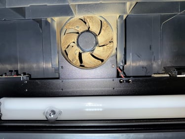 Und so sieht ein Laserkopf nach ein paar Stunden holzschneiden und -lasern aus